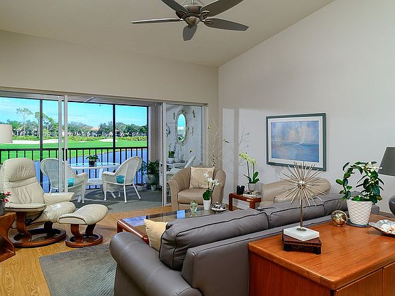 Upgraded kitchen includes new appliances and new cabinets. "Cortetic" luxury vinyl plank-flooring is throughout living, dining, kitchen, office and halls. Vaulted ceilings in the living room, dining and kitchen area add to the feeling of openness and space. The master bedroom has its own bathroom which has just been upgraded, and a walk-in closet. There is spacious closet space in the other two bedrooms (one is set up as a den). The area designed as a breakfast room off the kitchen has been set up as an office; often owners make this area a TV room. There are two linen closes and a large closet in the entry hall. Bedrooms are carpeted with tiled baths. "StormSmart" hurricane screens have been added on the Lanai. The unit includes a carport with extra storage closet. There are plentiful additional parking spaces throughout the condominium property including 10 spaces adjacent to 4171. The monthly fee includes water. Sawgrass is a fiscally sound and regularly maintained community with friendly and active owners.