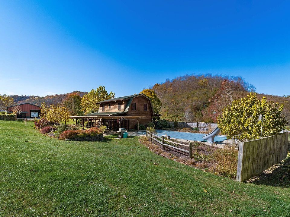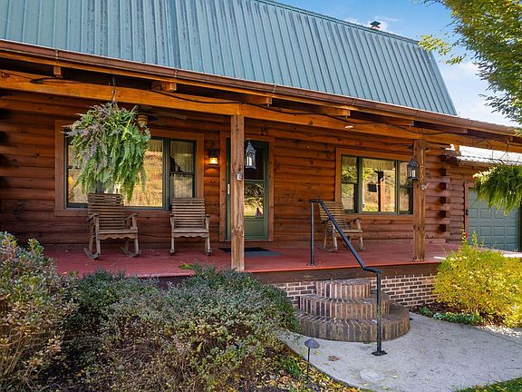 Log Cabin Home on 10.98 acres of beautiful land with a 40x45 amish built out building w/oversize doors, In Groung Pool, Amazing Views at every angle. Huge Paver Patio partly covered & backs to a flower garden with a pond & flowing water fountain!!! Automatic watering system for the hanging basket and plants are on a Timer for self watering, the seller thought of everything to make this home self sufficient. The building is equipped for 2 campers w/dump station and 30 amp plus a 50 amp breaker..plus the building has a commode that flushes. Both septics have been cleaned 10/2025. The covered front porch is very deep w/ceiling fans for comfort, you can sit and watch the rain coming over the hill out front in peace. 3 skylights open with ease so you can see the stars from inside. Newly upgraded bathrooms, Newer Hardwood floors thru out, New Windows . Must see, the sellers have made it care free and easy to maintain. Many pool supplies will be there to get the season going. The seller will be proud to show the buyer everything they need to know.