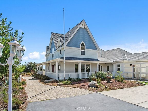 HUGE PRICE IMPROVEMENT! SELLERS ARE MOTIVATED! This is your chance for an affordable property on the Santa Rosa Plateau! Private… serene…magical! This charming farm style home set on a secluded 4.8 acre lot is everything you are hoping to find all at an affordable price on the Santa Rosa Plateau! Entering the property through a long winding paved driveway, you are greeted by dramatic rock outcroppings and stately oaks. A graded pad ready for a barn and horse facilities or an additional ADU is ready to build with water and power already at the site. Traveling further, the lovely main home and detached garage are perfectly placed to take in the scenic view beyond. Graced by a wrap-around porch, the attention to detail is evident all around you. As you enter this cozy 3,015 SF home, you are greeted by a formal living room and dining room to the right and a Chef’s kitchen and open concept family room to the left. Abundant with granite counter space, including both separate island and breakfast bar island, stylish white cabinetry and stainless steel appliances. The main floor primary suite offers a screened in porch, spa like bath and huge walk in closet. Upstairs are three additional bedrooms, two full baths, and an office or 5th bedroom. Flooded with natural light, this home features French doors, bay windows, beautiful gothic and dormer windows all adding to the home’s unique appeal. Perched atop the three car garage, is a 761 SF one bedroom, one bath guest apartment with a full kitchen and living room, perfect for extended family or rental income. The property is served by a private well, and includes a she-shed, dog run, and play area. Don’t miss this gem of a property!