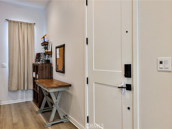 Beautifully Upgraded Home in the Sought-After City of Corona! This turn-key property offers 1,626 sq ft of stylish living space, featuring 3 bedrooms, 2.5 bathrooms, and a 2-car attached garage. Step inside to an open floor plan with high ceilings, recessed lighting, dual-pane windows, laminate flooring, and plush carpeting throughout. The modern kitchen boasts white cabinetry, quartz countertops, glass tile backsplash, stainless steel appliances, pantry, and direct access to the backyard—perfect for indoor-outdoor entertaining. The spacious primary suite showcases elegant wainscoting, recessed lighting, and an upgraded en-suite bathroom with dual vanities, a walk-in shower, and walk-in closet. Bedrooms 2 and 3 include ceiling fans and share a well-appointed full bath. Additional features include a convenient indoor laundry room with cabinets and shelving. The low-maintenance backyard is finished with pavers, artificial grass, and vinyl fencing—ideal for relaxing or entertaining. Enjoy resort-style amenities in the Bedford community, including parks, walking and hiking trails, a clubhouse, and a sparkling community pool and spa. Conveniently located near shopping, dining, and entertainment. Move-in ready—don’t miss this one!