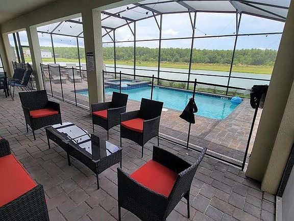 The Newly Storey Lake lakefront resort home on the market - a perfect short term rental investment property or spacious private retreat. This 8 bed / 5 bath villa spans 4,289 sq ft of living space across two floors, offering a bright open living/dining/kitchen area with quartz countertop and designer appliances that open up to the pool and lake-view patio. The home offers high ceilings, multiple entertainment zones including a game room and in-home theatres, en-suite tubs and more. The home is ready for short-term rentals with professionally decorated Disney rooms and fully stocked amenities, offering a magical experience for families. Outside you will find an enclosed heated pool and spa with private tranquil lakefront views, an exclusivity in Storey Lake. Storey Lake resort is a private gated community just minutes away from Disney parks, restaurants, shopping centers, and other key Orlando attractions. Community features 24-hour gated access with multiple resort-style clubhouses, large swimming pools, sports and recreation courts, complimentary shuttles, private cabanas, and more. Don’t miss out on this great opportunity in coveted Storey Lake, contact for a showing.