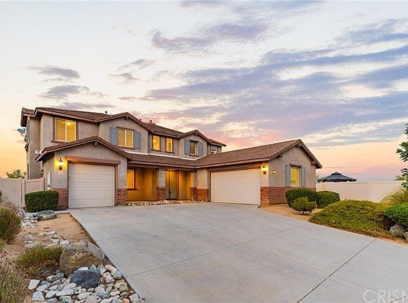 Best View of the Valley!!!! Spectacular Sonoma Ranch Estate In West Palmdale with Water conserving front yard w/ desert landscape. This amazing home features 5 large bedrooms, 4 baths with 3599 sqft and on a 15,353 sq ft lot. Upon entry you will view the Formal entry with wood flooring that extends throughout the 1st floor. Home has a large living room and dining room. Full downstairs bed and full bath. Family room w/ gas fireplace, and entertainment cut-out. Gourmet style kitchen w/ granite countertops, large center island, upgraded dark cabinetry, stainless steel appliances, and granite backsplash. Double sided staircase leads upstairs to the oversized loft area. High ceilings and recessed lighting throughout. Luxurious master bedroom w/ connecting bath w/ garden tub. Stunning view of the surrounding mountains and city lights. Low maintenance backyard w/ desert scape with patio large slab. Home has Dual a.c. and a Split 3 car garage. Call today!!!