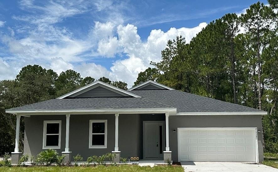 The country lifestyle you have always wanted. The beautiful Ashville floorplan is a 4 bedroom, 2.5 bathroom, 2197 sq. ft. home that rests on 1.2 acres in the desirable rural Royal Trails Community. Well appointed spaces include an open floor plan, 9 ft. ceilings and windows throughout providing plenty of natural light. Features include a wrap around front porch, energy efficient Low E double pane vinyl windows, solid wood cabinets, wood tile floors, tray ceilings, 8ft entry doors, including the french doors leading to your covered lanai, where you can wind down after a long day and enjoy all that nature has to offer in your expansive backyard surrounded by mature trees and wildlife. The kitchen is the heart of the home complete with a large island and stainless steel appliances. The spacious master bedroom includes a large garden tub, double sinks, and a huge walk-in closet. Quick access to Lake Norris for your family to enjoy fishing off the dock or playing in the community playground. Abundant wildlife, including Deer, Bears, Turkeys, and Bobcats. Royal Trails features miles of paved road to walk, bike ride, or jog and zoning permits two horses. The community is located just minutes from Publix and CVS, and an easy trip to downtown Eustis or Mount Dora for dining and entertaining options. Take advantage of country living with close access to the Orlando attractions, beaches and multiple historic downtown districts via the 429 connector. Escape the hustle and bustle of the city and enjoy peaceful living today!