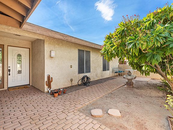 Welcome to this beautifully updated 3-bedroom, 2-bath home, perfectly situated in a desirable neighborhood with no HOA and Fee Simple land--you own it! From the moment you arrive, you'll love the inviting curb appeal with a refreshed front courtyard and low-maintenance desert landscaping.Step inside to discover a bright and airy floor plan featuring vaulted ceilings, fresh paint, new flooring, stylishly renovated bathrooms, and upgraded lighting throughout. The remodeled kitchen is a true highlight, showcasing modern cabinetry, sleek countertops, stainless steel appliances, and upgraded fixtures--ideal for everyday living and entertaining.The spacious living room offers a cozy fireplace and dual sliding glass doors that open to a covered patio, seamlessly blending indoor and outdoor living. The primary suite includes French doors to the backyard and a generous walk-in closet.Set on a large lot, the home features a pet-friendly backyard with endless potential--perfect for adding a pool, spa, or BBQ area. Fenced and gated side yards provide extra room for storage, equipment, or off-road toys.Tucked away on a quiet street, yet just minutes from shopping, dining, and conveniences. Plus, enjoy the savings of low IID power rates. This home truly has it all--don't miss your chance to make it yours! Schedule your private showing today.