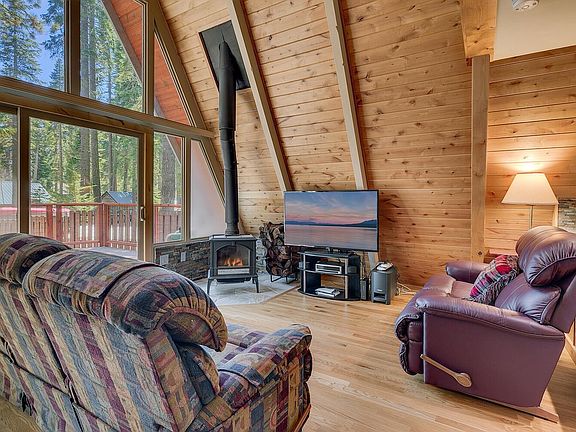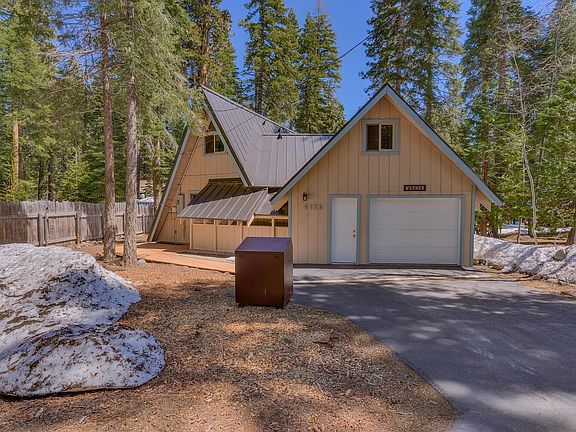 Welcome to the highly sought-after neighborhood of Tahoe Pines! This extensively remodeled West Lake A-Frame retreat is turnkey & ready for Summer 2025. This beautifully crafted 3-bedroom, 2.5-bath mountain cabin boasts numerous upgrades, including solid core doors, knotty pine accents, oak flooring, alder cabinetry, and stunning granite countertops with custom backsplashes. The large windows throughout the home ensure abundant natural light. The new back deck is constructed with composite decking and secured with hidden fasteners, offering a uniform and long-lasting appearance, perfect for summer gatherings or relaxing afternoons in the sun-drenched area. The spacious backyard is enclosed with a shadow box fence, providing privacy while maintaining a picturesque outdoor setting. Year-round storage is easily accommodated with a large two-story shed and convenient streetside access to the single-car garage in front. The property has had the same owner for the last 37 years, has never been rented and has seen very light use during their ownership. This desirable and well-maintained location is perfectly situated for easy access to summer hikes up Eagle Rock and Blackwood Canyon. The extensive West Shore Biking system is just down the street, and the central location offers proximity to everything the West Shore has to offer, while still maintaining a level of privacy and tranquility not found with other settings. Beach, lake, and private pier access with the Tahoe Pines HOA is just a ten-minute walk away & even less by bike. This charming mountain cabin is the perfect opportunity to start your Lake Tahoe legacy.