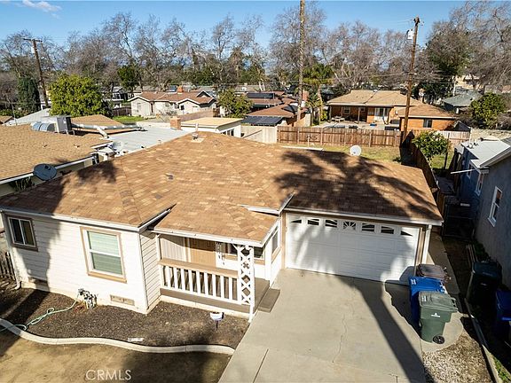 This cozy home is located near the plaza, which has plenty of shops, restaurants and a movie theater. You are welcomed by an inviting front porch. The kitchen has granite countertops and stainless steel appliances. Kitchen flooring is ceramic tile that continues into the dinning nook and also in the bathroom. The flooring throughout the rest of the house is modern scraped/distressed engineered hardwood. Two original bedrooms and a large den that has been converted to a 3rd bedroom (Buyer to do their own investigation). Third bedroom can be accessed from back yard or through second bedroom. The bathroom also has the same granite countertops as the kitchen and an updated tile shower with a beautiful glass inlay design. You have an indoor washer and dryer. The 2 car garage is attached but has no direct access to the home. Dual pane windows have been installed throughout. Both front and back yard are a blank canvas for your imagination. Home has been upgraded to 200 amp electrical service. Low taxes and no HOA. Less than 5 minutes to the 91 freeway.
