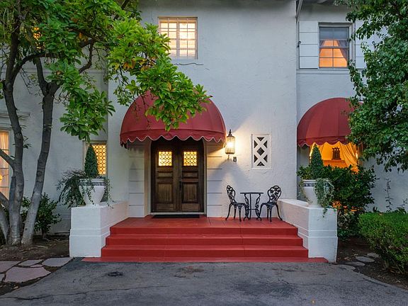 This 1928 Sunset Boulevard Mediterranean Revival residence, situated on a 1.76 acre lot on Christmas Tree Lane in Old Fig Garden, was designed by renowned architect Rafael Lake for the Bernhauer family. As President of the then Fresno Planing Mill Co., Mr. Bernhauer infused his vision and craftsmanship into every detail of this home, which includes Mahogany millwork archways, coffered ceilings and so much more. As you enter thru the Arch Top Mahogany Double Doors, you are greeted by a Grand Foyer and a beautiful curved staircase. To the right is the Spacious Formal Living Room offering a stunning Fireplace, an adjacent elevated sitting space, and to complete this wing of the home, an Isolated Bedroom w/En-Suite Bath. To the left of the Foyer is the grand Formal Dining Room, boasting a Curved Bay Window that floods the room with natural light and can accommodate a large gathering of family and friends. Two Butler Pantries, both with sinks and an abundance of counter space, expand on the spacious Kitchen space for entertaining. A second staircase to the upstairs is situated between the two Butler Pantries, as well as the stairs to the basement which boasts a beautiful Wine Room. The Chef's Kitchen features Exquisite Portuguese Tiles, Wolf Range, Wall Oven, Built-in Refrigerator, Built-in Griddle, Informal Dining Area, and a Pantry. A lovely Studio/Family room is located adjacent to the Kitchen and offers a Fireplace and a wall of Shuttered Windows, which makes it a perfect room for relaxation. The over-sized Laundry Room featuring a Sink, ample Counter Space, Washer/Dryer and a Freezer, plus another Spacious Isolated Bedroom with adjacent Bath complete this section of the home. The Upstairs features the Primary Bedroom with an En-suite Bath, Dressing Area, walk-in Closet and access to a Balcony which views the rear garden. Bedroom # 4 views the front garden, Bedroom #5 features an En-Suite Bath, and Bedroom #6 and #7 which share a Jack-n-Jill Bath complete the Upstairs The Guest House is just steps away from the house and features a Spacious Bedroom, Kitchen with Dining Area, a Shower Bath, plus a storage room, and offers views of the Sparkling Swimming Pool and beautiful Grounds. Other Amenities include a 4+ Car Garage, Tile Roof, on most of the home, Owned Solar, 4 HVAC Units, Potential RV Parking. Completely Fenced Property offering Mature Landscaping. Do not miss the opportunity to make this special property your new home! Call for your private showing.