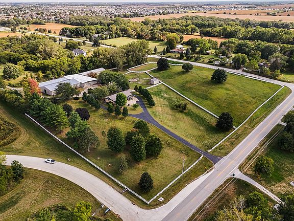 This Executive Horse Property offers 18 stall barn w/60’x100’ indoor area, guest/ground keeper's home & unique 4,300+ sqft finish, 4 bed, 3 bath updated ranch all on over 11 acres w/newly sealed driveway, concrete RV pad w/electric all just outside city limits! HOME: main level includes warm & inviting eat-in kitchen, large formal dining room, vaulted great room w/wood burning fireplace & wall of windows w/incredible views of pasture, updated guest bath, flex room (bedroom or office), & updated primary suite w/walk-in closet, laundry & attached sunroom. Fresh exterior/interior paint, new carpet & lighting throughout, new downspouts & LeafGuard gutters. Lower level walkout is perfect for separate living w/radiant heated floors, 3rd & 4th bedroom, full bath, complete kitchen, family room w/fireplace & 3 seasons room & laundry. Attached garage is heated. GUEST HOUSE: Main level has full kitchen, living room w/sliders to deck overlooking pasture) & updated bathroom. Lower holds bedroom & extra toilet in attached garage. BARN: includes 18,000 sqft under roof, 30x40 shop, heated bathroom & office, tack room, wash/dry hookups, Hot/cold water wash bay, NEW center roof, outdoor riding area w/PVC fencing, NEW lean to, Nelson horse waterer. Pastures are beautifully enclosed w/4-rail white vinyl fencing. Enhancing the curb appeal. This is the best of both worlds of city amenities w/country setting of mature trees, perennials, manicured grounds. Simply Amazing!