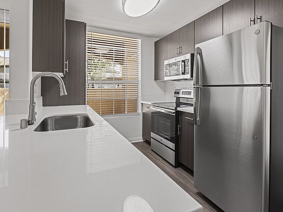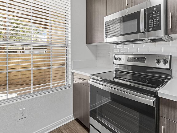 - Exterior features: 9 foot ceilings, Amazon Hub, Barbecue, Car garages for rent if available*, Conditional Deposit - 1 Month Rent, Controlled entry access with dedicated parking, Expansive private balconies/patio, Free Weights, High-arc pull-out faucet, On-Site Maintenance, On-Site Management, Pet Park, Quartz countertops*, Spacious closets, Stainless steel GE appliances, TV Lounge, Virtual training room with TRX training system, Wood-style flooring in living spaces*