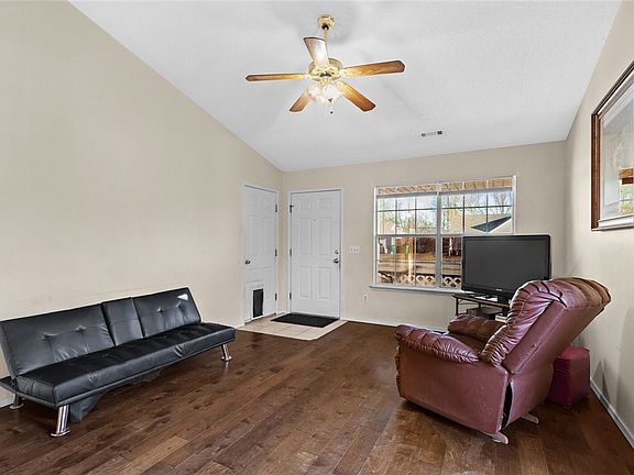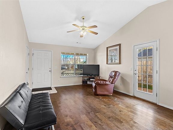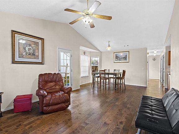 Upon entering, you'll be greeted by a bright and airy living room illuminated by natural light that floods through the large windows. The beautiful wood floors throughout the home create a warm and inviting ambiance that flows effortlessly from room to room. This home boasts a prime location within the subdivision near I-49, while still offering a tranquil and serene environment.