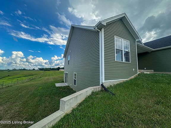 Welcome to 4177 Fairground Road in Brandenburg, KY! Built in 2023, this beautifully designed 3-bedroom, 2-bath ranch offers the perfect blend of modern living and peaceful country charm. Situated on a spacious 1.13-acre lot with serene views, this home is ideal for those seeking comfort, style, and space. The main level features 1,664 square feet of open-concept living space, perfect for both everyday living and entertaining. Enjoy the inviting flow between the living, dining, and kitchen areas, filled with natural light. Step outside to relax on the covered front porch or take in the scenic backyard from the large back deck. The full walkout basement offers endless possibilities, already rough-plumbed for a potential third bathroom—ready for your custom finish. Additional highlights include a water softener system and a radon mitigation system for added peace of mind. Don't miss this opportunity to own a move-in-ready home with modern amenities and country tranquilityall just minutes from town conveniences.