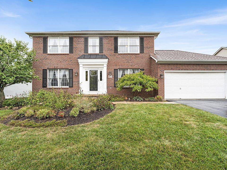 First time on the market! This one owner home in Hoffman Farms was built in 2000 and is conveniently located near Hilliard schools, downtown Hilliard and The Well - Hilliard Recreation & Wellness Center (opening in 2025), and has direct access to the Heritage Trail bike path through the backyard. Stunning curb appeal featuring an all-brick facade and new front door (2025) with sidelights. Once inside, you are greeted by a grand entry flanked by dedicated home office and dining room. The first floor features bamboo flooring throughout and spacious family room with gas log fireplace that opens to the kitchen. Eat-in kitchen with solid wood cabinetry, granite counters and newer stainless steel appliances are centered around island with bar seating. Retreat to the cabin-like screened porch with cathedral ceiling and views of nature outside every window. Laundry (washer and dryer to convey) and half bath complete the first level. Upstairs has 3 bedrooms, including primary en-suite with tray ceiling, and shared hall bath. Unfinished basement has unlimited potential to be additional living space or extra storage. Oversized 2-car attached garage with adjacent finished flex space for workshop, craft room or exercise. Recent updates include upstairs carpet (2024), HVAC and hot water tank (2021) and roof (2016). See A2A.