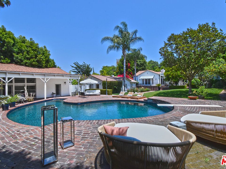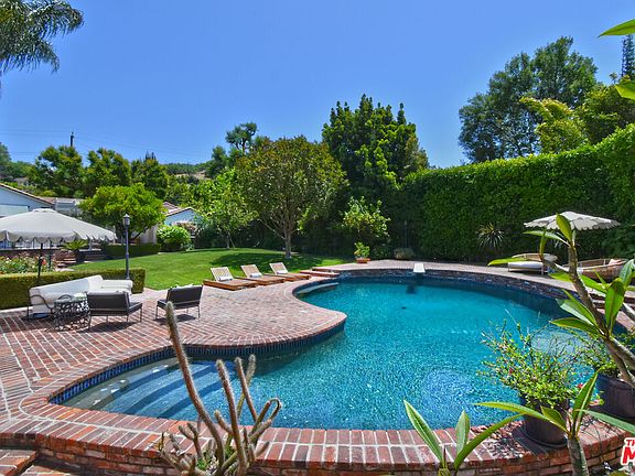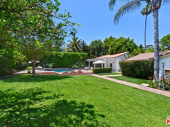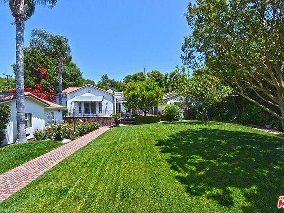 One of the largest flat lots in all of Sherman Oaks. This Single story gated compound has a great guest house and a super cool pool house. Privately gated with a circular driveway. Modern floorplan has high ceilings, wide hallways, gorgeous real wood flooring, sizable walls to accommodate a stellar art collection. It's the huge grassy yard, the lovely brick patios for al fresco dining, the fruit trees, the mature landscaping that encapsulates the entire property in privacy that make this the ultimate California lifestyle. Close to prestigious schools, easy access to freeways for work, but this south of Ventura Blvd location is ideal to enjoy a privileged lifestyle retreat that is centrally located to all the studios, shopping restaurants, easy access to airports, and Century City. The detached guest house with a kitchenette is perfect for esteemed guests, or running a creative studio (recording/editing/writing). Turn-key, stylish new designer-finishes and appliances. Whole house audio and security.