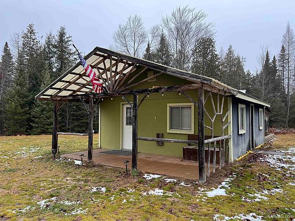 This Upper Peninsula getaway cabin is located on 12 acres, sits adjacent to State Land, and is a short distance away from the River. Not only does the property front on State Land, but you have very easy access to 1,000s of acres of additional state land just a short distance in either direction from the road. The simple one room cabin is open concept, and offers a flexible layout for you to place your furniture, beds, and whatever else you need to enjoy the great outdoors. This could be the up north getaway cabin you have always dreamed of!