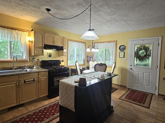 Kitchen is open to the living room which maximizes the space in here. Journey out your drive and find yourself near the areas most loved ORV trails, a short drive from the Manistee and Pine Rivers and only 25 min to Lake Mi. Private sitting deck off primary with sidewalk to front and pole barn + cement parking in front of the house.