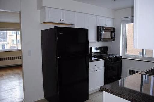 This apartment features a renovated kitchen (new black appliances, faux granite counter tops, ceramic tile flooring and new lighting). The