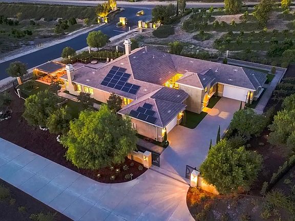 Welcome to 41770 Knoll Vista Lane, an exceptional single-level estate offering 4 bedrooms and 4 baths on 2.17 acres within the prestigious gated community of The Groves in Temecula’s renowned wine country. Crafted for those who appreciate sophistication and serenity, this residence showcases vaulted ceilings, open-concept living spaces, and a seamless flow between indoors and out. The gourmet kitchen is the heart of the home—appointed with premium appliances, custom cabinetry, and an expansive center island—opening through La Cantina doors to an elegant outdoor living area with a fireplace, perfect for gatherings under the stars. Each bedroom includes its own ensuite bath, while the primary suite offers a spa-inspired bathroom and private access to the outdoors. The grounds are a private sanctuary featuring an outdoor spa, pergola-covered seating areas, and lush landscaping accented by grapevines and mature trees. A Tesla solar system enhances energy efficiency while maintaining the home’s commitment to modern comfort and sustainability. Surrounded by tranquility yet minutes from world-class wineries, fine dining, and golf, this extraordinary estate embodies the pinnacle of Temecula luxury living—where timeless elegance meets contemporary design in one of Southern California’s most coveted communities. Experience the lifestyle you’ve been dreaming of and schedule your private tour today.