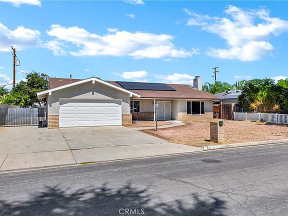 Welcome to this desirable spacious home with a large lot situated in a peaceful east Hemet neighborhood. This home offers 3 beds with 2 baths and 1552 sqft of living space boasting a pleasant floor plan with laminated/tile flooring throughout the home. The home also has a large kitchen accompanied by plenty of cabinets and granite counter tops. The kitchen leads to a massive backyard surrounded by block and wood fencing. The backyard also has a galvanized steel shed that is great for storage and a covered patio. Alongside the home you have RV-access with plenty of space for toys. In front of the home, you have a big yard, a small patio, steel screen door and driveway leading into a 2-car garage. The home is also energy efficient with its PAID OFF SOLAR!! Conveniently located near Schools, Churches, Soboba Casino, and shopping centers. Don't miss the opportunity to call this home!!