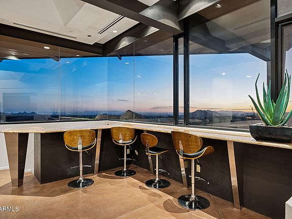 WOW: $1 million price reduction from previous listing! Contemporary home offers exceptionally elevated and stunning unobstructed 270 degree views of city lights, sunsets, mountains and golf course from every room. Very rare for a home under $2M to sit so far above the homes in front, easily the best views you'll find in this price range! All living areas of main house are on one-level with 4 large storage closets in the lower level. Framed for elevator. Kitchen and bath updates done Summer 2023. Kitchen offers Sub-Zero & Miele appliances with views of all common areas of the home and major mountain ranges of the Valley. Lighting updated throughout 2025. Great Room has two separate TV areas, pool table area, and 9' boulder that dramatically protrudes thru the wall. 4 bedrooms are en-suite; guest house can function as 2 bedrooms for a total of 5 bedrooms. Guest house is perched above a boulder field and offers even better views. The main patio is built around magnificent boulders and features built-in BBQ, spa, and views of the entire Valley. Ample room for large negative-edge pool and additional patio space if desired. Oversized 3.5 car garage has abundant storage. Furnishings all potentially available. Some adjacent lots may be protected from having a home built, providing much more open space and enhanced view corridors [Buyer to verify independently]. This home is priced to sell! Golf and social memberships are potentially available for purchase through the Club; buyers are not required to purchase any type of membership.