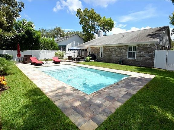 Have you been looking for that home that has everything you want? Then come see this now and stop looking! A meticulously maintained 3 bedroom/2 bath/2 car garage pool home that has been completely updated. The salt water and heated pool was just installed 2 years ago, has a modern beach area with an umbrella holder and fountain, and lots of deck space covered in pavers. The kitchen has white cabinets with shaker doors, White Nimbus marble counter tops, glass backsplash, stainless steel appliances, and a large island with bar stools. The family room has high vaulted ceilings with a stacked stone wood burning fireplace running to the ceiling as the main focal point. There are also sliding glass doors leading out to a covered and screened in patio that is adjacent to the pool. The master bathroom has rich dark wood cabinet with granite counter tops, dual sinks, floor and walls covered in ceramic tile, and a shower stall with frameless glass doors. Always maintained with the exterior just painted and wood replaced on the porch, newer hot water heater, ADT Security System, Lifetime Warranty on the gutters, and Fabric Shield 250 mph hurricane window coverings. The backyard is very spacious and if you have pets it's already has white vinyl fencing. For golfers this property is located only 5 minutes from the world famous Innisbook Golf Resort where the Valspar Championship is played.