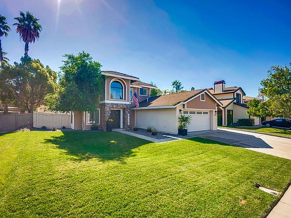 Nestled on a peaceful cul-de-sac This home has 4-bedrooms, 3-bathrooms with a full bedroom and newly remodeled bathroom downstairs. Downstairs bedroom has its own entrance ideal for guests, an office, or multigenerational living. Step inside to be greeted by freshly painted home with high ceilings and an abundance of natural light that fills every room. The kitchen, outfitted with new white shaker cabinets and new quartz counter tops. Stainless steel upgraded appliances include stove, dishwasher, microwave and refrigerator. With an eat at bar with pendant lighting and room for casual dining it is perfect for culinary enthusiasts as it seamlessly connects to the living areas. The cozy family room centers around a fireplace, creating a warm and inviting atmosphere for gatherings. New tiled floors throughout the downstairs. Upstairs, the large master suite boasts its own private fireplace and walk in closet. Remodeled master bath includes dual sinks with with shaker vanity and new quartz counter tops. It also includes a luxurious soaking tub, and custom designed shower that creates a tranquil retreat for relaxation. 2 more bedrooms upstairs with newly remodeled hall bathroom. Downstairs laundry includes washer dryer, cabinets and counter tops with a sink. Outside, the 9,500 sqft lot is a wonderful an outdoor entertaining space. Large Allumawood patio cover with ceiling fans provides shade and comfort for those warm days. Extra concrete and a large grassy area with a freshly planted slope complete the picture. Conveniently located near shops, wineries, the 15 freeway, and just minutes from top-rated schools, this home combines location and lifestyle.