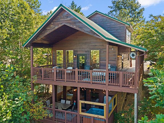 Beautiful 3 bedroom, 3 bath cabin located in the quiet Wears Valley area with pretty mountain views! Sold fully furnished this cabin is self managed and permitted to sleep 12 with a bedroom and full bath on each level. The main level has the Master suite, kitchen/dining room combo and living room with corner fireplace. Upstairs you will find the bedroom with 2 queen beds and an attached bath. The lower level features the bunk room with full bath and a game room with corner fireplace. Two levels have oversized decks making this cabin ideal for relaxing and outdoor entertainment. And nice level parking for 3-4 cars is ideal and a rare gem in the mountains.