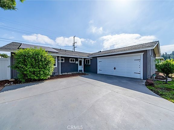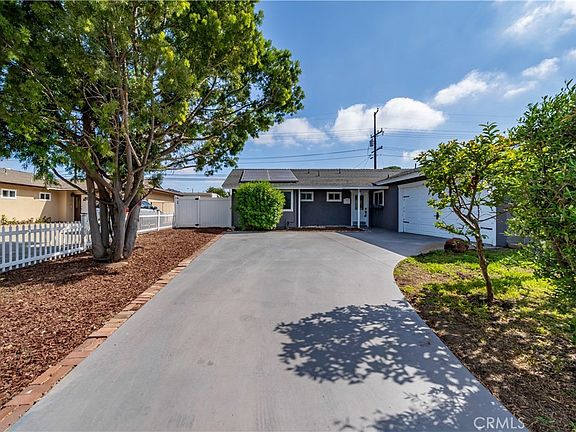 Notable features include solar panels, central A/C, and a long driveway with RV potential. Conveniently located near shopping, parks, freeways, and top-rated Orange Unified schools.