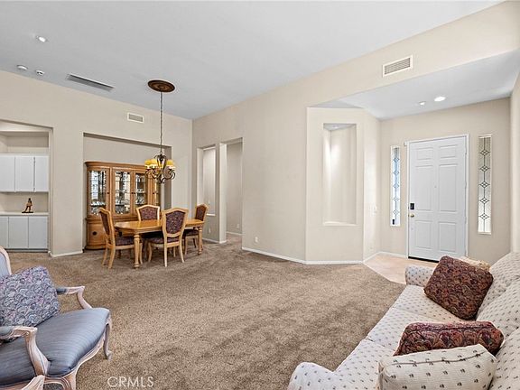Welcome to this well-maintained, single-level home nestled on a cul-de-sac in the sought-after golf course community of Temeku Hills! This residence has a bright, open floor plan with high ceilings and is a perfect blend of style and functionality. The kitchen has a large island, a newer Samsung microwave and oven, and a 5-burner cooktop. The kitchen is open to an inviting family room with a beautiful built-in entertainment center and a cozy fireplace. There is a spacious primary bedroom, and the primary bath has a separate shower and tub, a double sink vanity, and a generous walk-in closet with built-ins. The home includes two additional spacious bedrooms, a secondary bath, a dedicated laundry room with a sink, leaded glass windows, gorgeous shutters, and a Quiet Cool whole-house fan. The home's exterior has vinyl fencing, a block wall, an aluminum patio cover with roll-down patio shades, and rain gutters. Enjoy the privacy of having no immediate neighbors behind you and a nicely landscaped yard, plus being so close to the fantastic Temeku Hills community association features, including a gorgeous pool, hot tub, tennis courts, gym, and clubhouse with many fun activities. Surrounded by a stunning golf course, a pro shop, meticulously maintained landscaping, and tranquil water features, Temeku offers a lifestyle of leisure and recreation, all with low HOA dues and a low property tax rate. Convenient access to shopping, dining, wine country, Old Town Temecula, Pechanga, and year-round entertainment. This is more than just a home; it’s a lifestyle. You will love it here! Don’t miss this exceptional home!