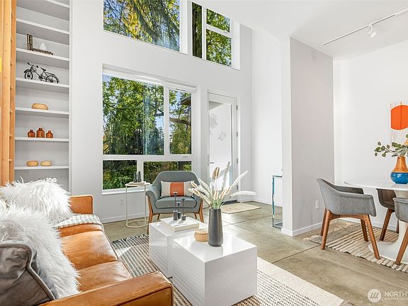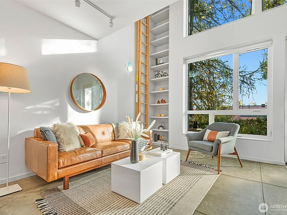 Soaring 30’ ceilings and walls of glass define this 5-Star Built Green home perched above Miller Park on one of Capitol Hill’s most coveted streets. Thoughtful, modern design blends warmth and sustainability through radiant concrete floors, maple cabinetry, and triple-pane windows. A sculptural bookcase grounds the kitchen and living area, illuminated by designer lighting. The top-floor primary suite opens to treetop views across an interior bridge to the dramatic window wall, while a flexible, light-filled second bedroom with Murphy bed floats above the living space below. Enjoy mountain views from the rooftop deck and a prized location moments from Monsoon, Hello Robin, Rocket Taco, and other neighborhood favorites.