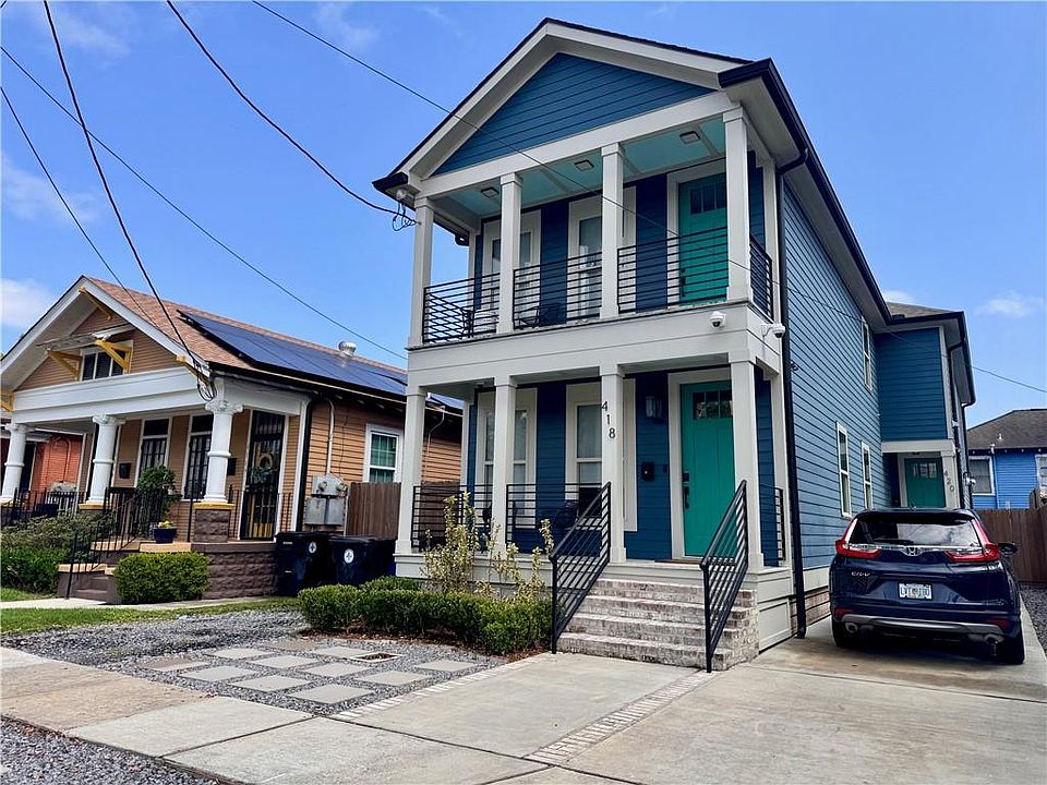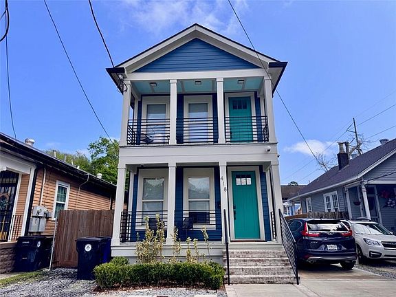 The top unit features a private balcony, while the bottom unit offers a front porch and direct access to the shared backyard. Additional highlights include tankless water heaters, separate electricity and gas meters (shared water), and a low-maintenance, rocked backyard. A two-car driveway provides convenient off-street parking.
