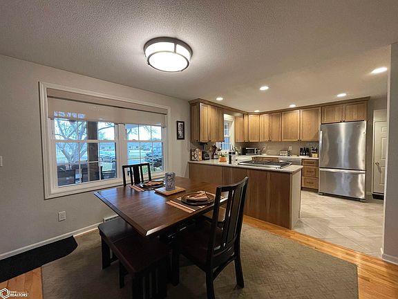 More than meets the eye! Enjoy a TOTAL of 1566 sq ft of finished space consisting of 1044 on the main level and 522 in the lower level PLUS an additional 308 sq ft of outdoor living space on the GORGEOUS, stamped concrete covered patio. Whether you are looking for your next year-round home or the perfect Clear Lake getaway, you need to see this property! Just off the #5 tee box at Oak Hills....you'll be on the golf course in no time. PLUS - it's just a short trip to State Park Beach! Easy access from I-35 and HWY 18. Features include beautiful original hardwoods, updated windows with custom blinds throughout, wood stove for chilly nights, brand new kitchen with updated appliances, apron-front sink and miles of solid-surface countertops, new bath with spa-quality shower and two main-floor bedrooms...one of which has laundry hook-ups tucked away for main-floor living! There's a full basement with family room / rec room area, bath and third bedroom with egress window. Enjoy the attached double garage or head out to the new 24 X 28 heated building with 7 X 24 workshop & double garage space with oversized 9' door to store all the toys! Maintenance-free exterior & steel roof so all you have to do is relax and enjoy! Call a Realtor and schedule your tour today!