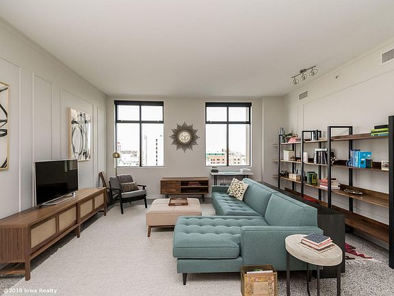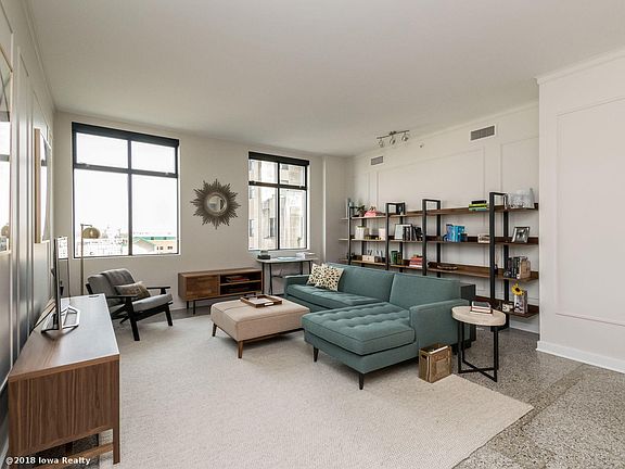 Luxurious living downtown in The Historic Liberty Building on the Top Floor. This corner unit has been totally renovated into a major architectural gem with smashing views of the downtown skyline. Flooded with east light, sunrise seen over the capital, this absolutely beautiful great room with terrazzo flooring is open to a fantastic renovated kitchen with Calcutta marble and glass. There is a balcony for grilling right off the kitchen. Three bedrooms include a large master with beautiful bath and closets and laundry. The third bedroom is lovely for a nursery or study. There are 2 secured parking spaces on the sky walk system, a large storage unit in the Liberty building (available for monthly fee and owners can use all the amenities of the Hyatt Place Hotels such as fitness facility, pool, theater room, as well as food and beverage. Don't miss this premiere executive condo. Walk indoors to the new Y. Enjoy the new Hy-Vee and Farmers Market. Best downtown condo.