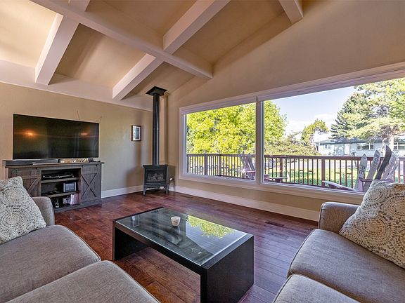 In Helena’s Upper East neighborhood, this unique 1976 modern ranch offers function and personality, combining bold design and recent updates. Vaulted ceilings with striking exposed beams, abundant natural light, and a new gas fireplace (2023) define the main living space. The kitchen features cherry cabinetry, granite counters, & SS appliances. The walk-out lower-level rec room includes a high-efficiency wood stove (2023) & sliding doors to a private patio. There are 4 bedrooms & 2 baths, (one bsmnt bedroom may not meet egress). The upstairs bath was fully remodeled in 2018 with an XL soaking tub, tile shower, & granite top. Major improvements include $50K in new Anderson windows, updated flooring and paint, and a high-efficiency furnace. Exterior highlights include hand-stained siding, awesome front and back decks, super lush, landscaped yard, & alley access to an oversized 2-car garage with workshop & storage loft. Conveniently located: .5 miles to St Peters, 1 mile to Lime Kiln trailhead connecting to Mt Ascension, 1 mile to the capitol complex, and 2 miles to the historic walking mall on Last Chance Gulch.