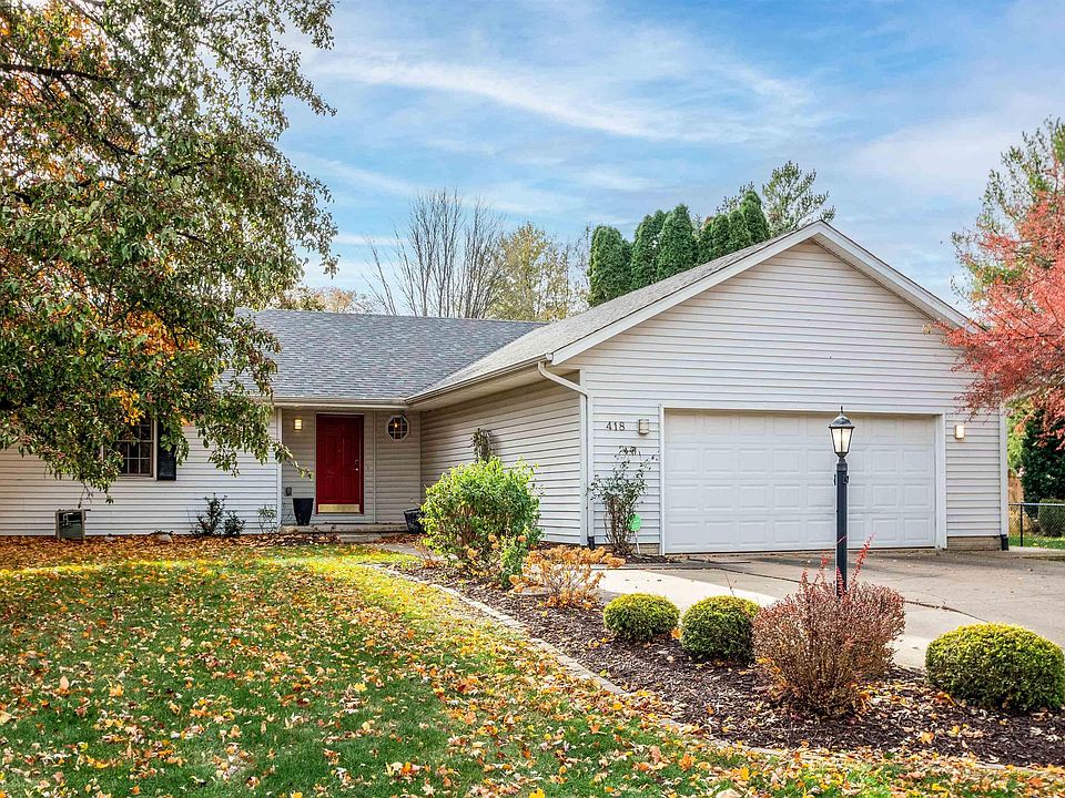 Welcome home to this incredible 3 bed, 2 bath property. There have been so many updates in the last few years including floors (2023), paint (2023), HVAC (~2020), sump pump (~2023), roof (~2018), water heater (~2019), solar panels (2023) (that will be paid off by seller at closing), back patio (2017), hot tub (2017), light fixtures, stove (~2023), washer (~2023), dryer (~2023)! The spacious two car garage includes a Tesla charger for our electric car loving friends, and has a workbench/workstation for your power tool obsession. Seller says with the Solar Panels their electric bill is $8/month! This property is about as low maintenance as you can get. Yard is partially fenced, the hot tub, tiki torches, planters, trampoline, and all appliances are included! Tons of storage in the basement, closets, and garage. Kitchens cabinets were redone in ~2016. Sump pump has water back up if the power goes out. Basement is plumbed to put an additional bathroom if you want to finish it! Geometric wallpaper in dining room in peel & stick if you'd like to add your own flavor to the decor. This house won't last long, schedule your showing today!
