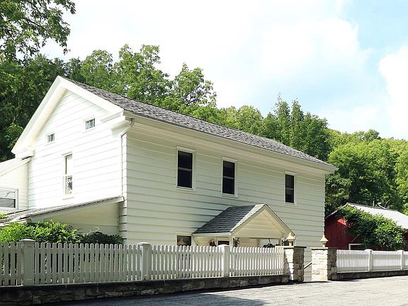 Welcome to your homestead retreat! This impeccably cared for estate offers an abundance of delights and beyond. The first floor boasts original hardwood flooring with tile creating a timeless charm. Savor your morning coffee on the tranquil side porch adjoining the kitchen where wisteria gracefully drapes over allowing the perfect balance of sun and shade. Wander into the kitchen to find stunning granite countertops over custom oak cabinetry providing ample storage space. The original wood doors and custom trim preserve the properties farmhouse character and create a sense of continuity. Upstairs you'll discover four various sized bedrooms and a full bathroom. Follow the stairs into the basement to enjoy a revamped space presenting 7 ft ceilings with several rooms such as a great room, hobby room, root cellar and laundry room with exterior access. Spend your days strolling around the property where you will find a peaceful creek and several separate structures enhancing your living experience! Outside you'll see that this estate is quipped with an original historic outhouse, a smoke house, summer kitchen, garden shed, and a workshop with added barn space! Last but not least a magnificent post and beam barn with 3 bay garage occupies the back of the yard showcasing the ultimate craftmanship while allowing friends and family to gather for easy entertaining. Do not hesitate to take your chance today to embrace all that this place has to offer while the opportunity lasts!