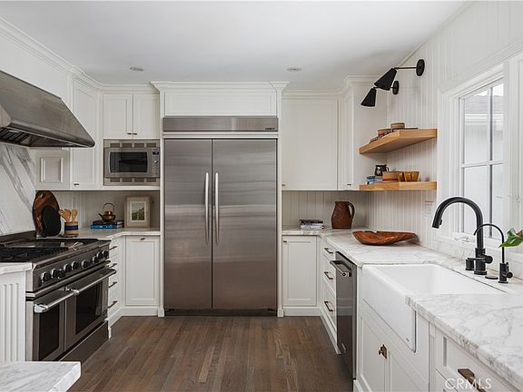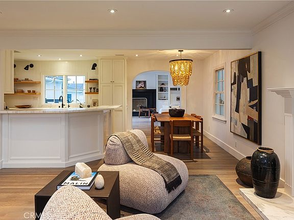 Welcome to 418 Broadway, a timeless escape that seamlessly blends transitional modern style with effortless California living. Situated on one of the most coveted streets in Eastside Costa Mesa, this thoughtfully curated four-bedroom, three-bathroom home is defined by its elevated design, warm functionality, and now, resort-style backyard retreat. Framed by a manicured hedge, the front yard offers a private lawn and patio area, perfect for morning coffee, playtime, or relaxed evenings. Step through the Dutch door into a sun-drenched interior featuring an open floor plan, high-end finishes, and intentional design touches throughout. At the heart of the home, the gourmet kitchen shines with sleek Carrara marble countertops, custom cabinetry, open shelving, peninsula seating, and premium appliances – ideal for everyday living and hosting alike. The expansive family room invites cozy evenings by the fireplace or lively gatherings at the adjacent wraparound wet bar. Just beyond, panoramic sliding doors open to a completely transformed backyard oasis, now featuring a sparkling pool, spa, sun deck, refreshed landscaping, and multiple seating or lounging areas that connect the main living areas for seamless indoor-outdoor entertaining. The formal living and dining rooms offer flexibility for elevated hosting or relaxed lounging, a built-in desk station and indoor laundry room deliver convenience, function and style. The primary suite is a true retreat, featuring dual walk-in closets and a spa-inspired bathroom with a soaking tub, walk-in shower, and double vanity. Three additional bedrooms provide ample space for family, guests, or home office needs. Other highlights include walkability to Mariners Elementary School and Library, shops and dining on 17th Street and parks, plus close to Newport Back Bay and beaches. With its ideal location, resort-style living, and elevated interior design, 418 Broadway offers the best of Eastside living, a turnkey home where style meets substance in every detail.