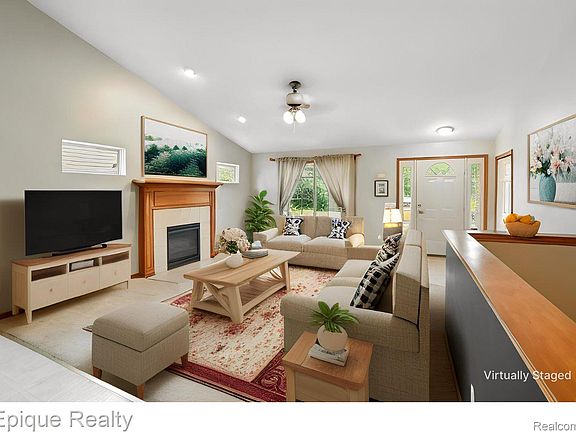 418 Converse Ct — This ranch home in Lake Orion features vaulted ceilings, an open layout, and a fully finished basement. The main level features a functional floor plan with the kitchen open to the dining and living areas. The finished basement provides ample additional living space with a library nook/play area, two flex rooms that can serve as an office, gym, guest or hobby area, a full bath with jetted tub, and a separate storage room. Located on a cul-de-sac right next to Paint Creek Trail with convenient access to Lake Orion schools and Downtown Lake Orion with shopping, dining, and parks. Conveniently located near downtown and main roads for quick access to amenities, while still offering a quiet street setting that feels private and relaxed.