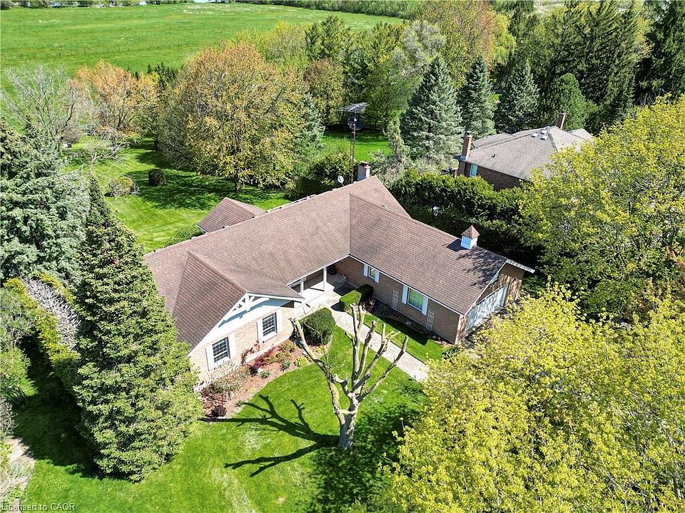 Imagine this incredible view 365 days a year! Daily sunsets! Situated on a rare 1-acre lot, this custom-built bungalow backs onto a horseback riding farm and is tucked away in a very quiet, yet convenient, North West Waterloo location. The views throughout this expansive bungalow are truly breathtaking, offering a picturesque display of horses, deer, and an array of birdlife. Every detail was carefully considered by these original owners during their build. Upon entering, you are welcomed into a spacious living room with vaulted ceilings and stunning views, seamlessly connecting to the formal dining room. Just a few steps away, the large kitchen awaits, offering multiple pantries, second dining area, convenient laundry room, powder room, and access to the double-car garage. Adjacent to the kitchen is an incredible family room featuring raised ceilings, cozy wood-burning fireplace, and direct access to the oversized deck. On the opposite side of the main floor lies the primary suite, complete with a full ensuite, heated bathroom floors, and walk-in closet. Two additional bedrooms and a shared full bathroom complete the main floor. The walk-out basement is brimming with potential! Featuring a spacious recreation room, two generously sized bedrooms with full-height windows (stunning views) and walk-in closets, warm storage, cold storage, large workshop, and a versatile office space that could serve as a third bedroom or be transformed into a full kitchen (rough-ins are in place). Out back you will find garden beds, a shed and lush, mature landscaping. With over 400 feet of depth, the possibilities for transforming this backyard oasis into your personal oasis are endless. And with only a handful of neighbours and an abundance of surrounding green space including the Walter Bean Grand River Trail, Conestogo Horseback Riding Adventures, RIM Park, and more. This property offers a rare combination of privacy and natural beauty, conveniently located within the city limits.