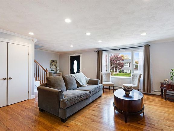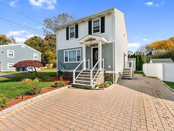 Welcome to 418 Dover! This beautifully updated home, featuring three spacious bedrooms and two and a half baths, blends style with modern amenities. The first floor’s open layout offers seamless transitions between spaces, with hardwood flooring and crown molding throughout. A stylish kitchen boasts granite countertops, stainless steel appliances, and ample storage. Adjacent to the main living area, a vaulted sunroom with sliding doors opens to the deck—perfect for outdoor dining and entertaining. A large living room with a custom mantle with an electric fireplace, an inviting dining area, and a convenient powder room complete this level. Upstairs, you’ll find three generously sized bedrooms and a newly renovated bathroom, with quartz countertops and a soaking tub. The finished basement is a bonus, providing extra living space with an and additional full bath. Outside, enjoy tasteful landscaping, a charming cobblestone driveway, and a spacious shed for additional storage. Located in East Providence’s Arlington Corner/Riverside neighborhood, this home offers prime access to the East Bay Bike Path, Squantum Woods, and the nearby amenities of Providence and Seekonk. Just move on in!