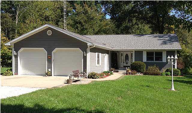 Private Location: Lovely ranch home w/2 baths, attached garage, large 3-bay workshop w/woodburner & lift, office, & lean-to all on 17.79 wooded acres +/- w/pond.