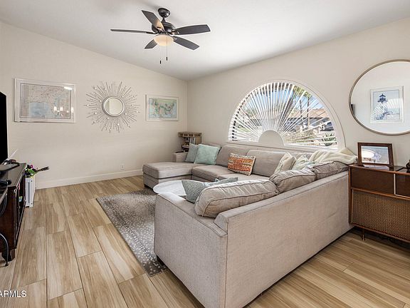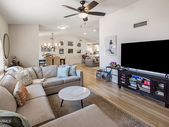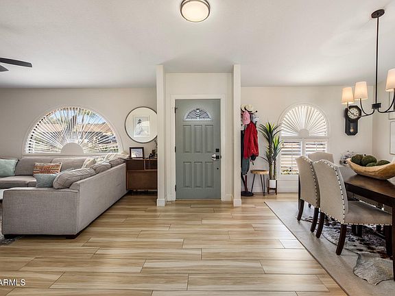 Charming renovation on 1/4-acre lot in Moon Valley! You'll love this open floorplan with vaulted ceilings, multiple entertaining spaces, and wood-grain tile floors throughout. Kitchen was remodeled in 2022 with new cabinets, quartz counters and stainless steel appliances. Primary suite and Bedrooms 2 and 3 all have walk-in closets. Both bathrooms were remodeled in 2023, including double sinks and large shower in the primary suite. Large backyard offers a covered patio, huge grassy yard and diving pool. New interior doors and new AC unit in 2023. Attached 2-car garage plus huge covered RV parking area for extra storage. No HOA!