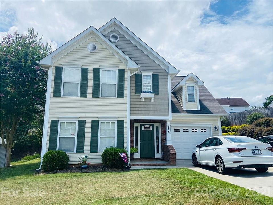 This move in ready home is 1,846 sqft on a 6,969 sqft lot, with a 1 car attached garage and double driveway. The downstairs features a living / family room, half bath, foyer, large kitchen / dining room combo with an attached pantry, and walk in laundry room. Once going up the stairwell featuring wainscoting. You will find a large open hallway / loft area, with hall bathroom featuring a vanity, garden tub and one stall shower. The master bedroom has attached full bathroom with vanity and one stall shower, and large walk in closet. You will also see a second bedroom, large third bedroom with dormer, also a bonus den/office/small bedroom. The easy to keep up level back yard features a large cement / paver patio, retaining wall full of foliage. Also a outdoor storage.
