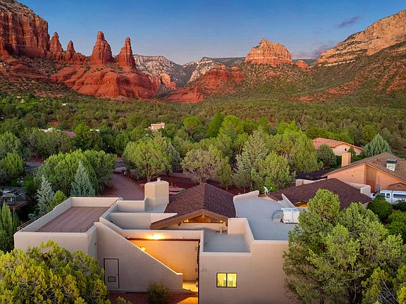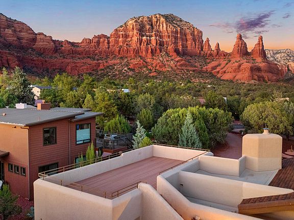 Tucked away in Sedona's coveted Chapel of the Rocks corridor, this half-acre, no-HOA sanctuary delivers the experience everyone comes here for: awe-inspiring red rock vistas, serenity, and effortless access to the outdoors. A 360° rooftop deck frames Cathedral Rock, Bell Rock, Courthouse Vista, and the Chapel—sunrise coffee, golden-hour sunsets, and stargazing feel like a private show every day. Step from your property directly to Coconino National Forest for quiet hikes and morning trail runs, then be in Uptown or West Sedona in minutes for dining, galleries, and everyday conveniences. Rarely available in this location, this property pairs total privacy with world-class views and direct forest access—an irreplaceable Sedona setting.