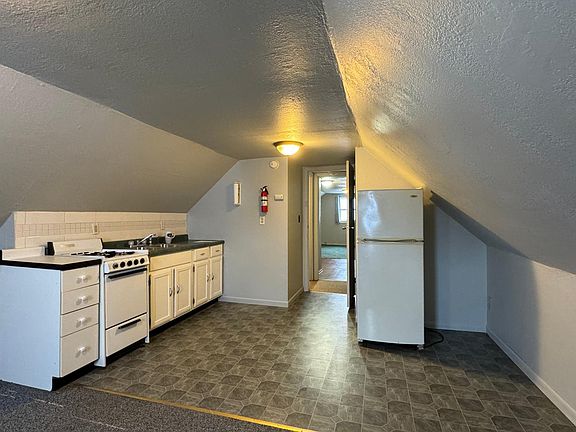 Unique and spacious remodeled one bedroom, one bath apartment on third floor in 6 unit non-smoking building. Pantry and large bedroom closet. Freshly painted, some new flooring, newly remodeled bathroom. Parking for one vehicle. All utilities (except internet) included in rent. Coin operated laundry in building. Lawn and snow removal included.