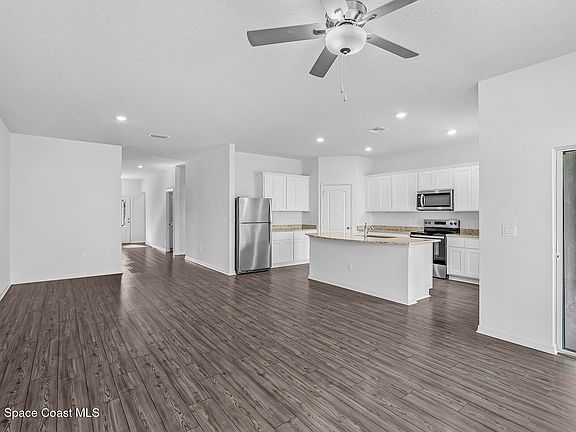 The Coral floor plan offers the perfect blend of space, comfort, and functionality, making it an ideal choice for families of all sizes. Featuring five spacious bedrooms, including a private master retreat with a dual sink vanity and walk-in closet, this home provides flexibility for everything from a home office to a guest room. The open-concept layout seamlessly connects the family room, kitchen, and separate dining room, creating an inviting space for everyday living and entertaining. A spacious covered patio extends the living area outdoors—perfect for relaxing evenings with family and friends. Both the front and back yards are beautifully landscaped with Florida native plants, adding natural charm and supporting the local ecosystem. In the generous backyard, two native trees will grow to provide years of shade and comfort. Add: **appliance models are subject to change**