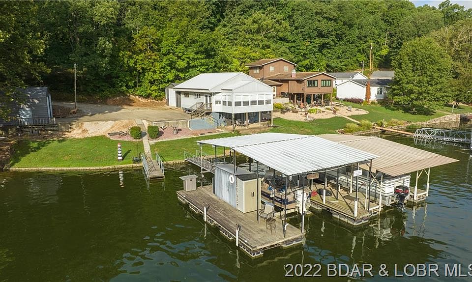 Perfect 2-bedroom two bath lake home on beautiful Lake of the Ozarks. A large detached garage (20x36) and a smaller detached garage (16x25) are just the icings on the cake on this gentle lakefront lot with deep water. Walk out your lakeside door to only a few steps to your 2 well dock or separate swim dock. The dock includes the lifts in each well as well as the storage area. All of this and located in a no-wake cove at the 2 Mile Marker of the Big Niangua. The home features 2 bedrooms, a bath, a kitchen living area, and a sunroom on the main level. The lower level has a living space, laundry, and bath for additional sleeping or entertaining. One of the few level Lake lots out there!