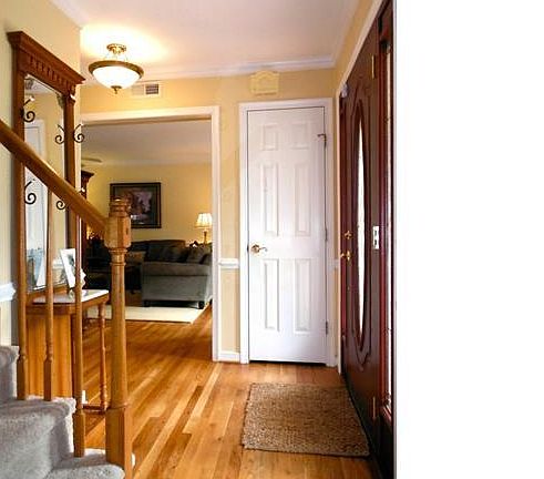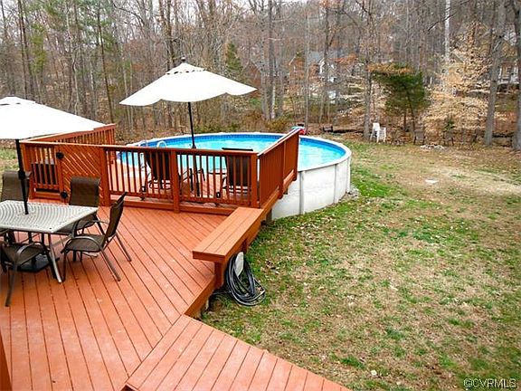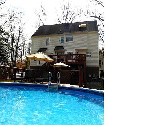 THIS POOL IS OPEN!!! Must see, gorgeous updated home nestled on nearly an acre (.81). All brand new carpet, and newly refinished hardwood floors. Kitchen was updated last year, with new cabinets, solid surface counter tops and new sink/faucet, glass tile backsplash, and beautiful vinyl tile floor!! Vaulted spacious master suite, with loft overlook. Spa master bath with double vanity, walk-in shower, corner soaking tub with decorative columns creating a cozy, serene environment to relax and unwind. 3 additional spacious guest bedrooms and a full hall bath. Huge multi-tiered deck leading to the above ground pool. Whole home security system. Fully finished basement with plenty of room for media room and exercise equipment (part tile/part carpet), and 2nd half bath. Newer decorative glass front door with sidelights. Attached garage, as well as a 12x10 detached storage shed. Inviting brick front walk-way with French drain, and paved driveway. Must see!!