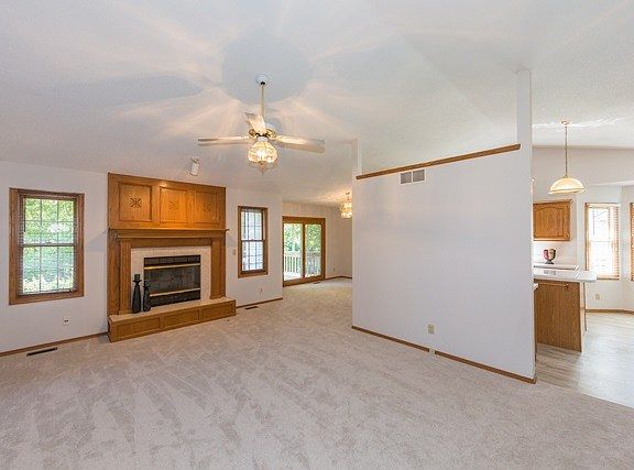 Great 5 bedroom home close to St Elizabeth and its in Goddard school district!!! Home is on a lake and has wonderful views! Home has new carpet thru-out and new laminate flooring in the kitchen and hall bath. The home also has fresh neutral paint through-out the entire house. The kitchen is spacious and has an island and an informal dining area. There is also a formal dining room. The living room has a gas-log fireplace and the ceiling is vaulted thru the living room, dining room and kitchen. The master suite has a big walk-in closet and the bathroom has two sinks. There is a laundry room on the main floor. The view-out basement has a large family room with a gas-log fireplace. There are also 2 bedrooms, a bathroom, and nice storage in the basement. One bedroom in the basement has French doors which would make a nice office. The home has permanent siding, a covered wood deck that can easily be screened in, a patio and a sprinkler system. Specials are paid off! Home is move-in ready!!!