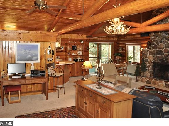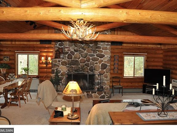 Log home on a beautiful 4.4 ac lot. Driving into ths property will make you feel like you are in the north woods. Well maintained home inside and out. Large LR surrounds the giant wood burning fireplace. The kit features stainless steel appliances and a large pantry. Master bedroom has an attached private 1/2 bath. The lower level has a large mudroom as soon as you enter from the garage or driveway. Lower level floor covered with travertine tiles. In addition to the 2 car, a large heated shed.