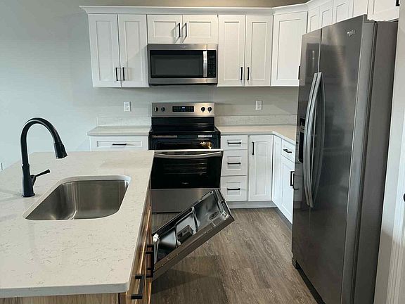 Stainless steel appliancesVinyl flooringQuartz countertops